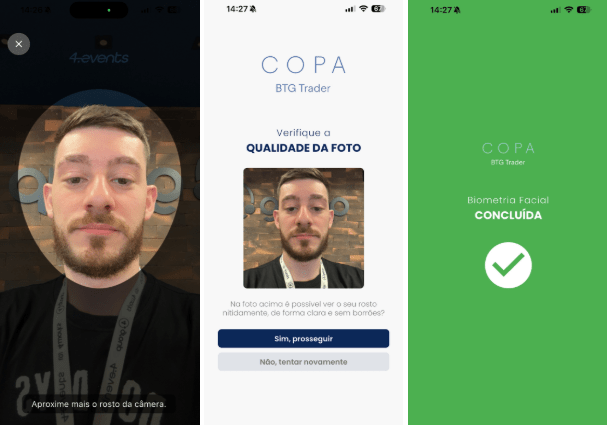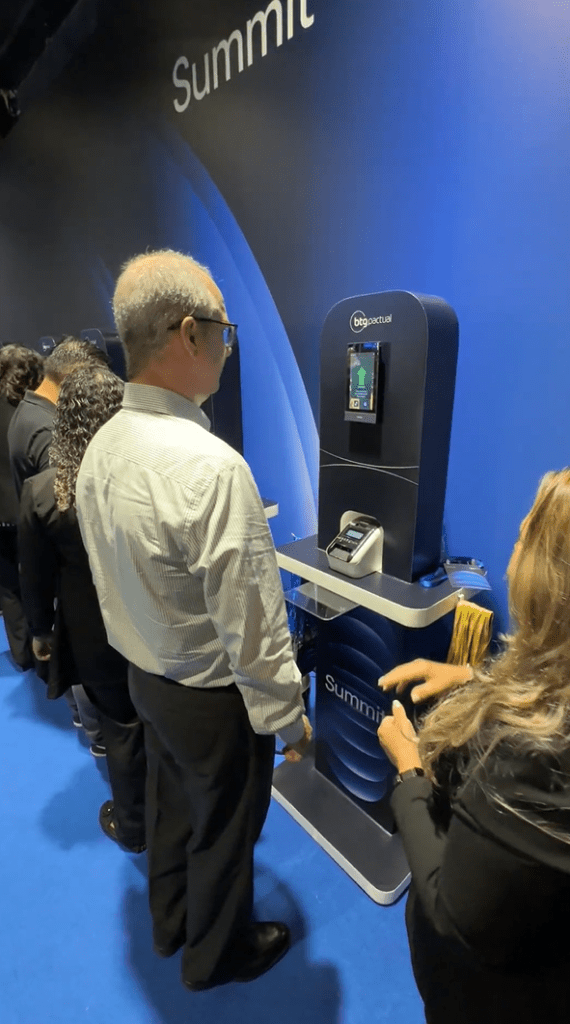 - BTG Summit 2026: Um dos eventos corporativos mais prestigiados do mercado financeiro exigia uma experiência de entrada impecável, condizente com o público de alto escalão. Utilizando o check-in com reconhecimento facial em eventos, o BTG Summit zerou as filas. Os participantes entraram de forma fluida e sofisticada, enquanto o sistema de foto de segurança garantiu a privacidade e o rigor exigidos pelo banco.